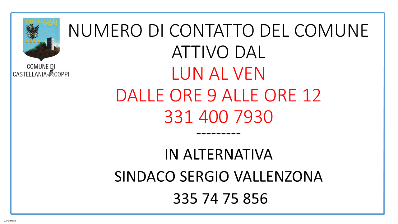 Visto il permanere dell'emergenza Covid-19 ed il relativo blocco dei concorsi pubblici, che impedisce al momento la selezione del nuovo impiegato, si forniscono le modalita' di contatto telefonico con il comune.